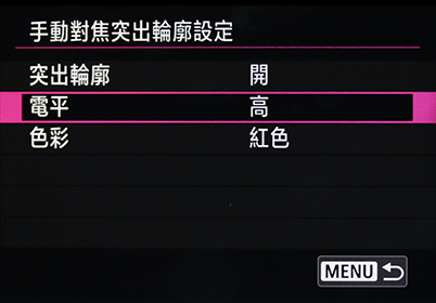 在於設定下,對焦指引會自動關閉。即使在設定選單裡打開,對焦指引只會在手動對焦模式開啟(會顯示標誌),所以可以留著為「啟用」也沒關係喔!