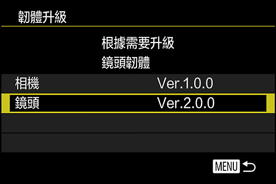 要檢查鏡頭版本,請在功能設定選單4選擇「固件版本」。