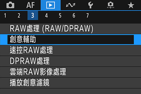 創意輔助功能在藍色功能表中,其他機內 RAW 處理功能都在這裡。