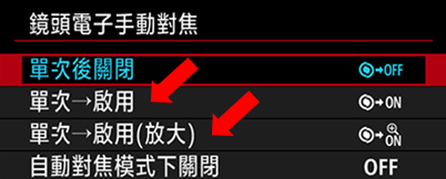 如果鏡頭支援電子手動對焦(查閱鏡頭使用手冊),即能跳過自動對焦,即使在自動對焦模式也能使用手動對焦細緻調整。這就是「恆常手動對焦」。