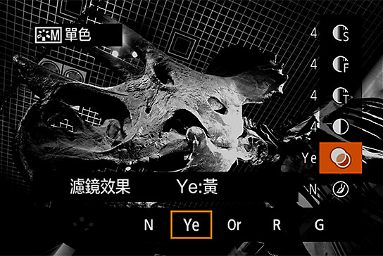 我希望令恐龍化石的相片有粗糙、不平凡的感覺,才能把它用作明信片,因此決定使用鮮明的單色修飾效果。